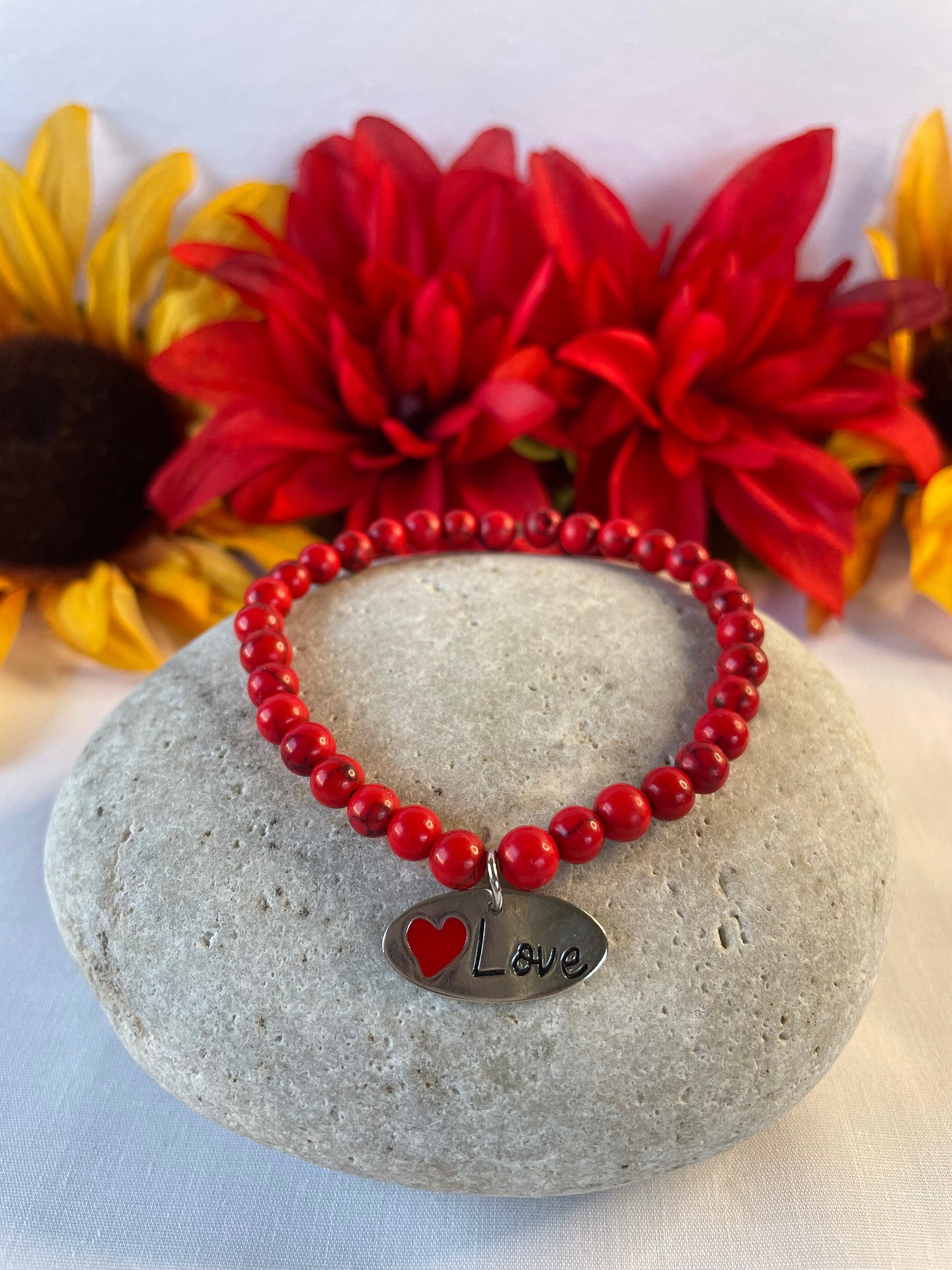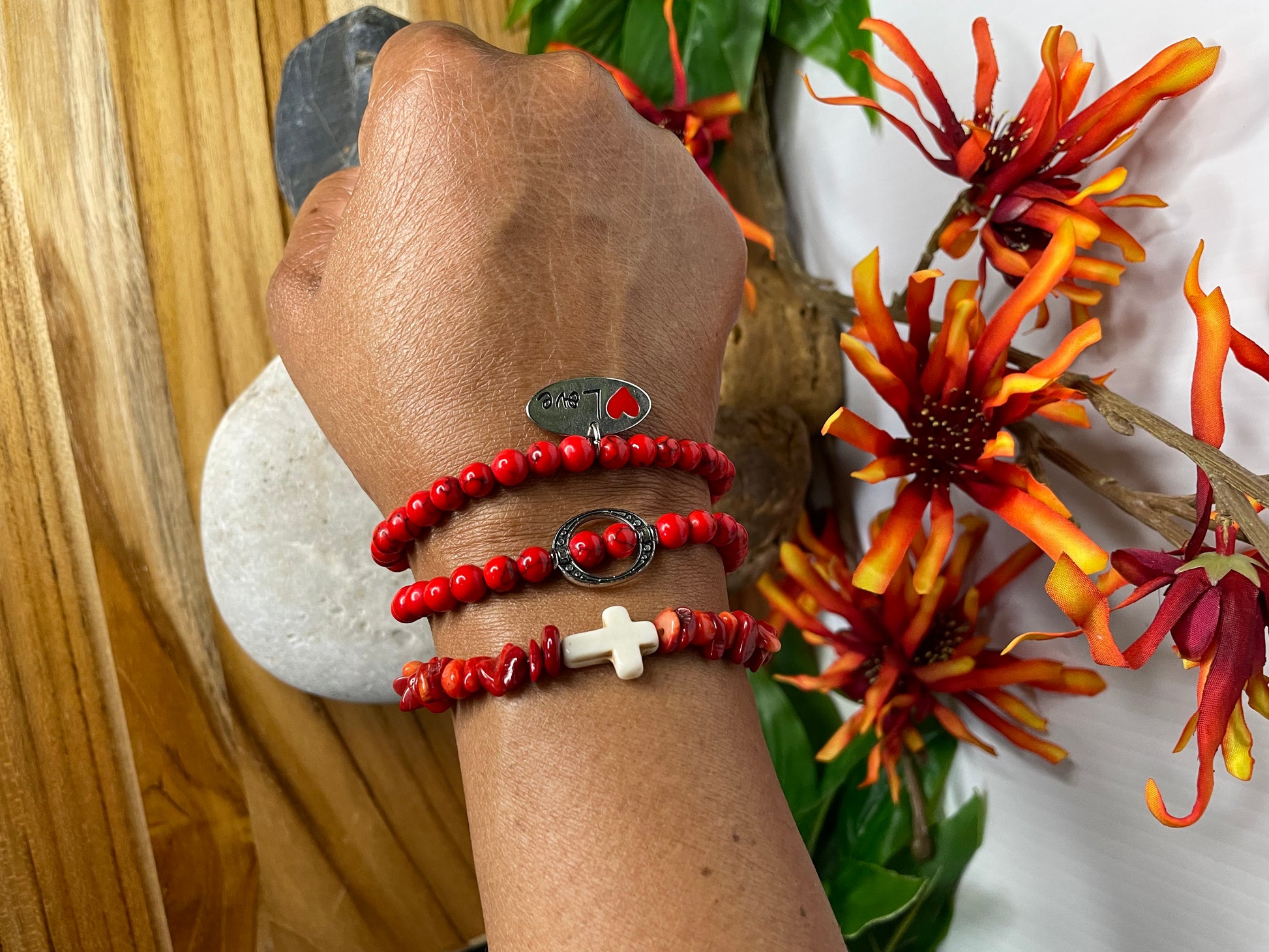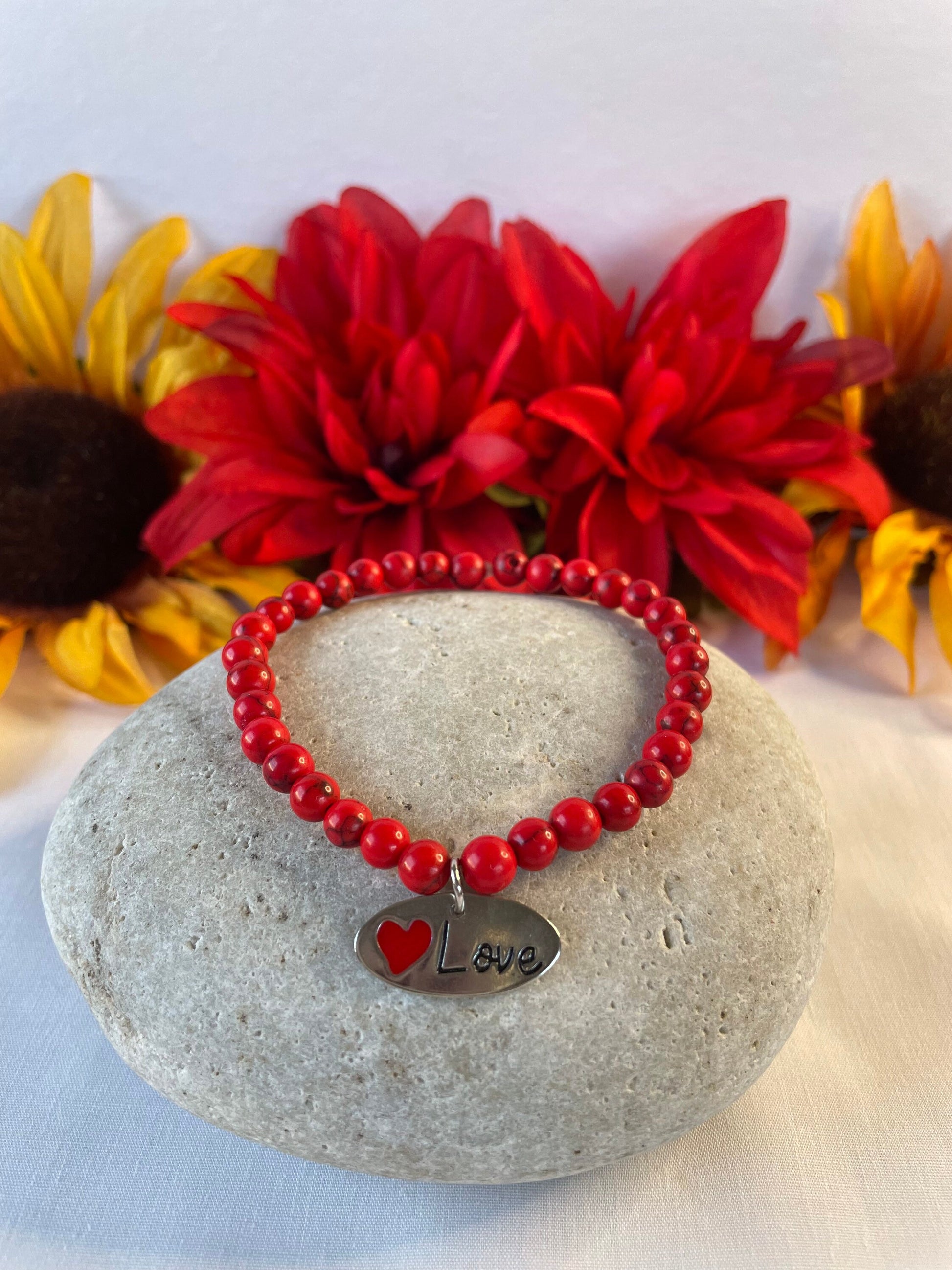 Red Bamboo Coral w/Love Charm. Healing Bracelet.