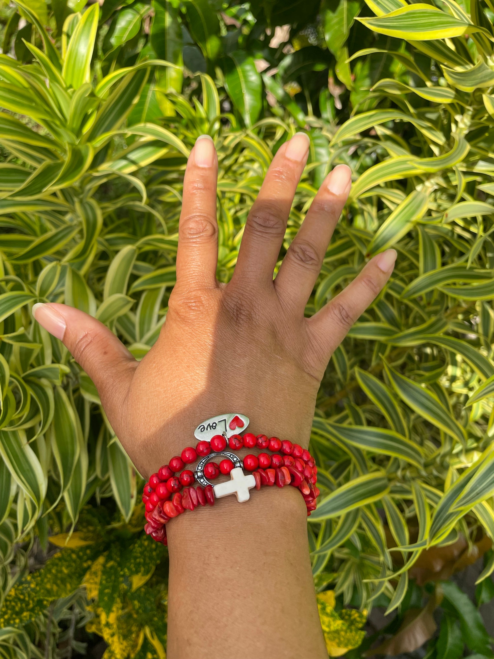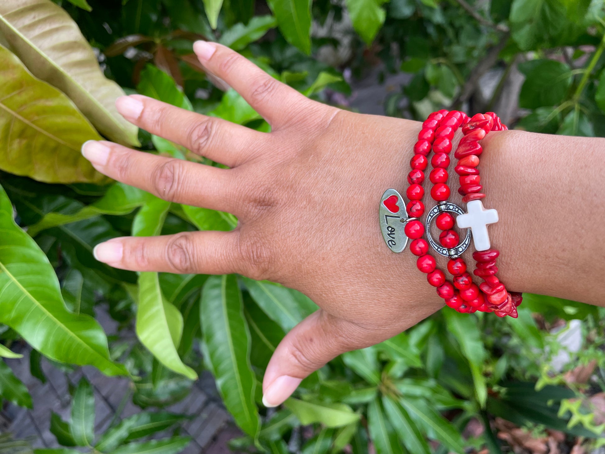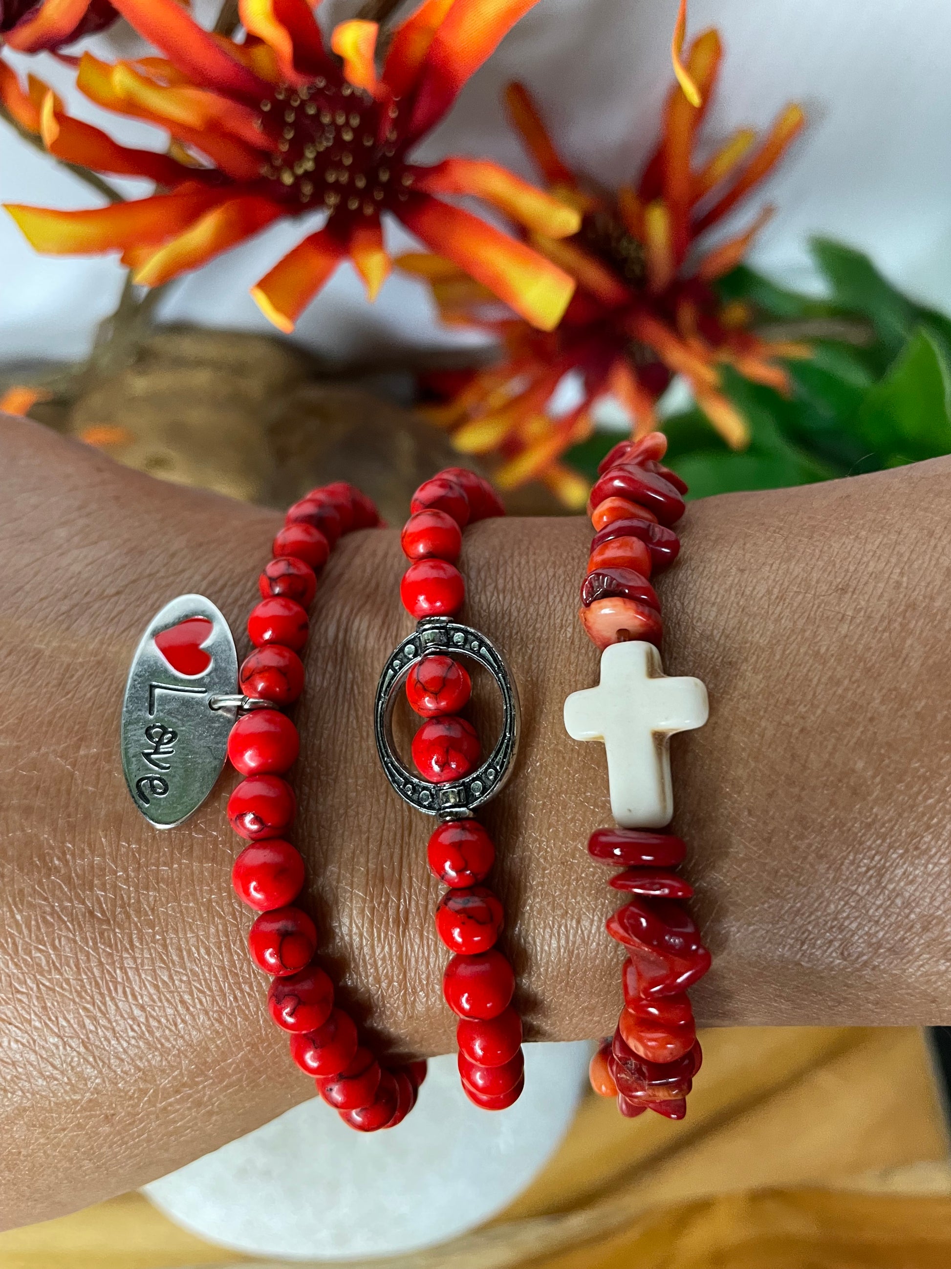 Red Bamboo Coral w/Love Charm. Healing Bracelet.